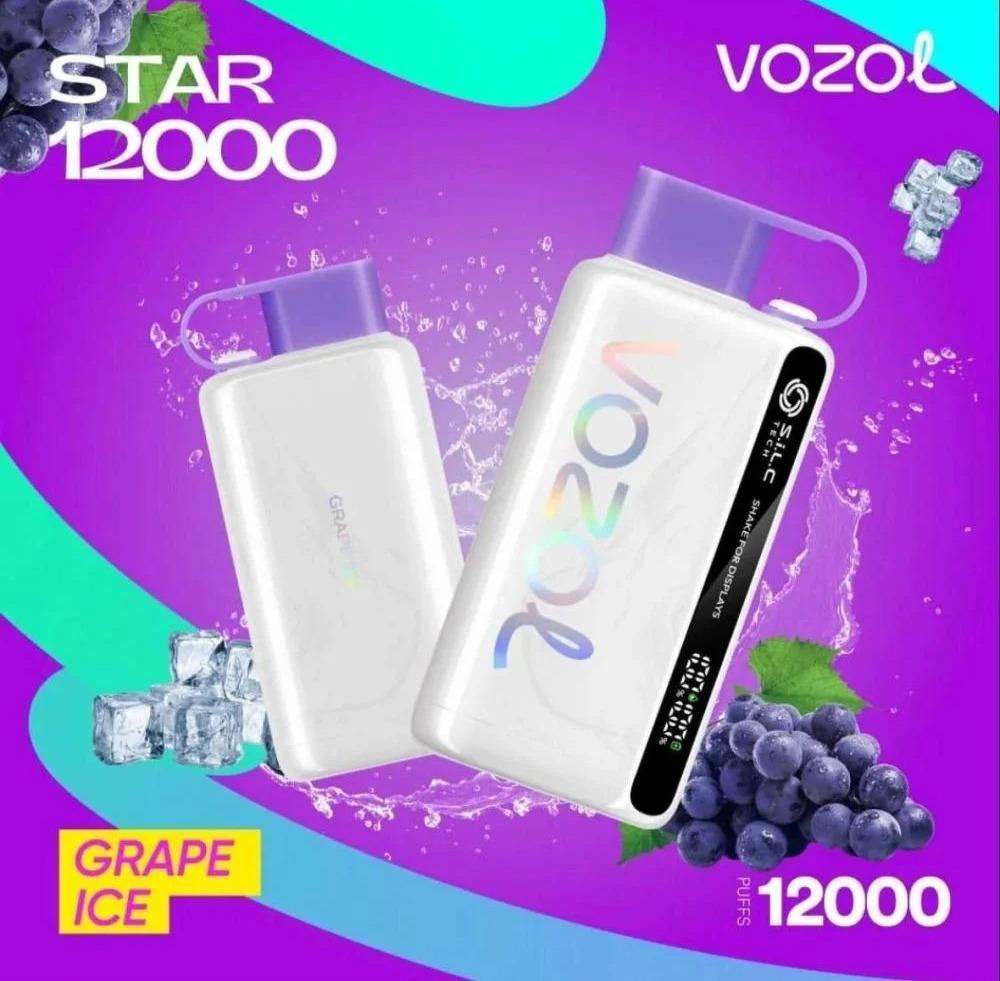 نقدم لكم سحبة فوزول ستار 12000 سحبه 50 نكوتين Vozol Star 12000 ، تاتي بنكهة سعة 20 مل و بطارية 650 ملي امبير قابلة للشحن و 50 نيكوتين لتعطيك حتى 12000 موشة بالاضافة لشاشة عرض رائعة