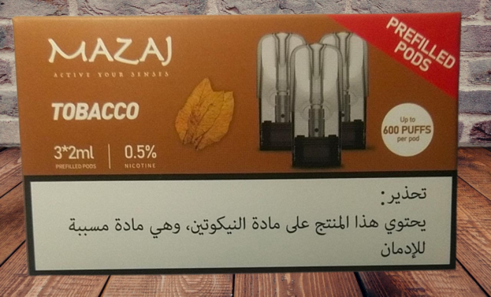 بودات مزاج 600 موشة توباكو Mazaj 600 Puff Prefilled Pods Tobacco