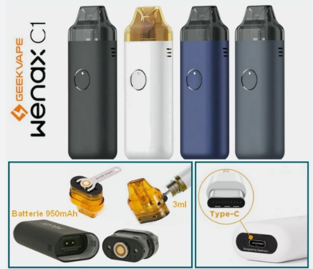 نقدم لكم سحبة ويناكس سي ون Geekvape Wenax C1 مزودة ببطارية 950 ملي امبير وبود سعة 3 مل وم توافقة مع كويلات Geekvape G Series من جيك فيب