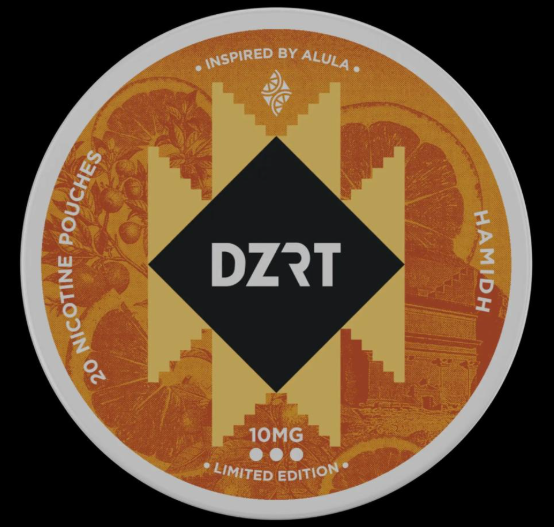 دزرت حامض برتقال اظرف نيكوتين  بنكهة برتقال حامض مزيج منعش من الحمضيات بطابع برتقالي قوي مع لمسة حموضة متوازنة، يوضع الظرف بين اللثة والشفة العليا لمدة 20–40 دقيقة حسب التفضيل، خالي من الدخان، القطران، والتبغ المحترق.
